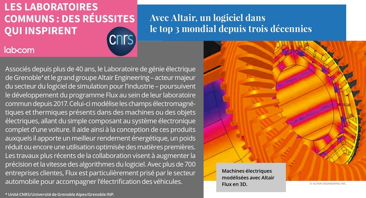G2Elab y a été cité grâce au laboratoire commun G2Elab/Altair créé en 2017, fruit d'une collaboration de plus de 30 ans entre le G2Elab et la société Altair et à l'origine du logiciel FLux, 3ème logiciel mondial en modélisation électromagnétique basse fréquence.